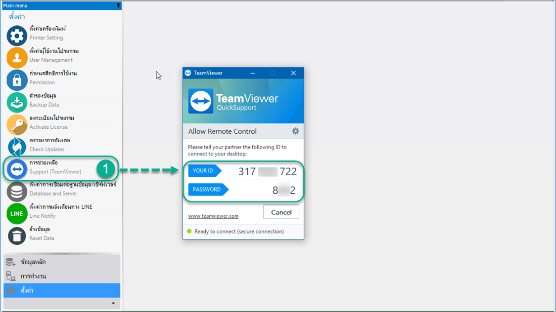 4.กรณีติดปัญหาการใช้งาน สามารถเปิดให้ทีมผู้พัฒนารีโมทหน้าจอแก้ปัญหา |